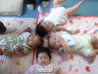 赤ちゃん並べて写真撮るとかわい~(`o'ヾ