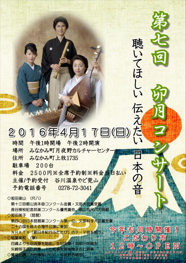 和楽器の音色がここまで芳醇で奥深いものなのかと・・・。日本の音を知って頂きたい。好きになってもらいたい。そんな思いで企画いたしました。違った視点からも楽しんで頂けます。ホールのロビーでは、「こだわり市」を同時開催いたします。・ユアンクレイグ(豪人陶芸家)・手作り革工房ハロハロ・根津桐材・朧月(花苗)・抹茶茶屋・パワジオ倶楽部(オリーブオイル) やど莞山の懸賞ご応募はコチラ ▼ ▼ ▼ http://prize.travel.rakuten.co.jp/frt/detail.do?f_no=52901&f_teikei=