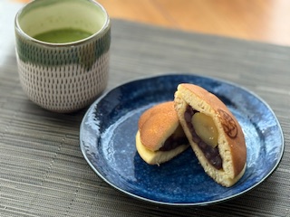 栗入りどら焼きを抹茶と一緒に!
