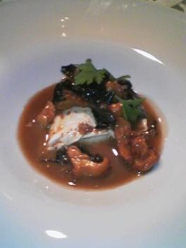 1ヶ月ほど前にメールがあり、東京にいる会社の先輩、Kさんが、大阪出張があるので飲みに行きませんか?!とのお誘いを受け、会うのは5年ぶり、飲みに行くのは・・それ以上振りに行ってきました!久しぶりなので気合いを入れて、エルポニエンテの本店を予約。団体さんが入ってましたが、カウンターで気持ちよく、食事させていただきました。そんな夕べにいただいた食事とワインを簡単に紹介します。まずはビールで乾杯!バス ペールエールビールサーバーから注がれて泡がとってもクリーミーでコクがあります。先輩は、スペインの瓶ビールを。料理はまず前菜に、サーモンとピーマンのマリネ風サラダを注文しましたが、写真を撮るのも忘れて、ビールを飲みながらがっついて食べちゃいました^^;次に頼んだのは、旨みたっぷりのこちら! 地鶏のポーチドエッグ キノコソース添えキノコの旨みが凝縮されたスープで、ご飯にかけたりパンにつけて食べたくなるほど!卵のとろ~りした黄身と合わさってさらにまろやかに。これを食べながら、ワインを選びました。私の好みはリベラ・デル・デュエロで作られるテンプラリーニョって品種のワイン。色々と悩みますよねぇ~。結構飲んでるワインが並んでますが、飲みたいものはお高くて。そう言ってると、あるワインが12,000円だったのですが、「02ヴィンテージは特価で8,900円!」とソムリエI氏に言われて、好みで、要求にピッタリだったので即決しました。アストラレス リベラ・デル・デュエロ [2002]アストラレスはティント・フィノ(テンプラリーニョ)100%です。フレッシュな果実味と、タンニンと酸味のバランスがとてもいいワインですね。強さとしてはミディアムフルボディでしょうか。タンニンがきめ細かく、エレガントさがあります。とっても美味しいですよ~♪ ソパ・デ・アホ(ガーリックのスープ)これは先輩がメニューを見て唯一決めた料理。アツアツで食べてると、先輩は汗かいてきた~!なんて。そりゃ、ガーリックで土鍋アツアツですからね~血行よくなると思いますよ。仔羊のグリル私の大好きな羊。もういつ食べてもここの羊は美味しいです。エルポニエンテはいいお肉を仕入れてるんだと思います。骨についてる身もしっかりしゃぶって^^;いただきました。そのお肉を食べながら、せっかくなので生ハムもオーダー。 ハモンセラーノ&ハモンイベリコの盛り合わせセラーノはまろやか、イベリコは甘味とコクを感じる・・って、まるでワインみたいな表現ですけど、先輩もセラーノがマイルドって言ってましたね。ソムリエI氏を交えていろんな話をして、19時から気が付けば22時半!楽しく美味しい時間を満喫しました。最後にエスプレッソをいただき、ご馳走さま。先輩のバブリー時代に戻ってみたいって話から、子供や家族というか、人生観のような話も聞けて、私と同い年のソムリエも、きっと心に残る話が聞けたと思います。ソムリエIさん、スタッフの皆さん、長い時間、どうもありがとうございました。この後はエルポニエンテ・ゴソに行き、1杯だけ飲んで、最終電車で帰りました。また機会があったら、是非一緒に飲みましょうね~Kさんっ!!