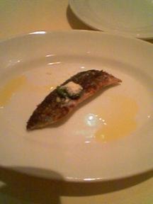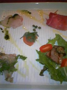 昨晩は、東京に行ってもう5年になる友人と、久しぶりに地元のイタリアンに行ってきました。シェフのオススメコース、税込み4千円の料理の紹介です。時間があまりないので簡単に。 秋刀魚のパン粉焼き・バジルソース秋刀魚は美味しいし、バジルソースが脂を爽やかにしてくれます。 広島産生蛸のカルパッチョ蛸の吸盤と身を別にスライスしてあり、身の歯ごたえと、吸盤のむっちりした歯ごたえを楽しむことが出来て面白かったし、さっぱりな蛸に少し効かせ気味にした塩とのバランスがばっちり!でこのコースで一番、良かった料理でした。 冬瓜と鱧のスープコンソメ系のスープは濃さも塩加減も絶妙!味がしっかりしみこんだ冬瓜と脂の乗った鱧のハーモニー、素晴らしいですね。 仔羊とピーマンのラグーのタリオリーニ今まで食べたことがあるようなソースですが、羊好きな私としては満足度の高いパスタでした。 大和肉鶏のイタリア塩焼きお肉がしっかりとした鶏で、塩とレモンを絞って美味しかったなぁ~。 デザート盛り合わせ左上から時計回りに。アケビ、食用ほおづき、紫芋のソルべ、ゆうせい卵を使ったカタラーナ。果物はそのままで美味しいし、芋の香りと味わいのソルベも、プリンも美味しくってぺロッと食べちゃいました。注文したワインはコレ。フラスカティ・スペリオーレ すっきりした白ワインですがほんのりとした甘味と適度なコクもあって、料理にも合ってて美味しかったです。パスタのラグーソースには赤ワインが欲しかったけど、メインの鶏肉はこれでOKでした。最後はエスプレッソでしめて終了。大満足なコースでした。友人とも美味しく食べつつ、何のために地元に帰ってきたのかの話を聞いて納得。もう彼は家を出て、東京に向かってると思いますが・・もしかしたら地元に舞い戻ってくることになるのかも知れませんね。