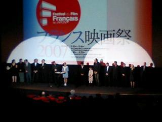 いよいよ、大阪でも始まった、【フランス映画祭2007】。オープニングは来日した監督や俳優たちの挨拶で座席は満席!ロビーにはその俳優たちを一目見ようと?!たくさんの人で賑わってました。そして、団長?な監督がそれぞれの映画と俳優たちを紹介。 東京に来ていたはずのカトリーヌ・ドヌーヴは大阪に来なかった模様ですが、ブノワ・マジメルなどたくさんの俳優が大阪まで来てくれてました。全員紹介が終わって写真撮影。 やっと映画が始まりました。 『輝ける女たち』はドヌーヴが出てはいますが脇役で、主演が誰?と言われると、ニッキーを演じたジェラール・ランヴァンか娘と息子の役者二人でしょうか。ストーリーは簡単にコピペで。南仏のニースで長年親しまれてきたキャバレー・“青いオウム”。オーナー・ガブリエルの突然の死をきっかけに、疎遠になっていたファミリーが再び集まることに。ガブリエルの実子たちをはじめ、かつて一世を風靡したマジシャンとその元妻に子供。幼なじみに、店で人気の歌姫など、多彩な面々がそれぞれの思いを胸に一堂に会す。そして故人を偲び、過去を振り返りながらそれぞれが抱える秘密や悩みに思いを馳せるのだが…。どの人とどの人が付き合ってて、誰の子供なのか・・が入り組んでてちょっとわかりにくいところもありますが、まぁ人生はいろんなことがあって、人それぞれ自分らしく、自分の人生を生きなさい・・ってことでしょうか?!もしくは、人生は舞台よっ!って感じ。 つながりを追っていくうちにいろんな人の面を見ることができる映画でした。