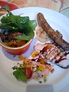 イタリアの、女のワインの造り手8人が集まってのブッフェ・ワイン・パーティに参加してきました。たくさんの料理と24種のワインを飲み尽くし!!肝心のワインを取るのを忘れましたが、数名の作り手さんと写真を撮りました。とりあえずは北の料理のオードブル(画像)からいただき、南の料理、中部の料理と3部構成でバラエティ豊かで、とっても楽しめました~まぁ料理の種類もとても豊富。北は牛頬肉のバローロ煮込みや魚の干物のフライにミネストローネスープなど。中部からはラルドやレバーペーストのパテにミーとソースっぽい太麺のパスタ、魚介の煮込みのサルティンボッカ(絶品!)など。南も魚介系のサラダにイワシのフライ、子牛肉のロールに野菜を使ったペンネ(これも美味しかった!)など。それぞれ料理だけでなく、デザートもしっかり用意されてました。さて、ワインのほうですが簡単に造り手のものを並べましょうか。北はピエモンテのヴァルフィエリノヴェッロ(飲んだのはネッビオーロ・ダルバやバルベラ・ダスティ)フリウリのリヴィオ・フェルーガヴェルティーゴ(カベソー、メルロー)ヴェネトからはマァジコスタセラ・アマローネ・クラシコ(コルヴィーナ、ロンディネッラ、モリナーラ)トスカーナのテヌータ・ディ・カペツァーナヴィッラ・ディ・カペツァーナ・カルミニャーノ(サンジョヴェーゼ、カベソー)同じくトスカーナのバディア・ア・コルティブオーノキャンティ・クラシコ・リゼルバ(サンジョヴェーゼ、カナイオーロ)もひとつ、トスカーナのモンタルチーノからはファットリア・ディ・バルビブルネッロ・ディ・モンタルチーノ(サンジョヴェーゼ・グロッソ)ウンブリアからはルンガロッティルベスコ・ヴィーニャ・モンティッキオ・トルジャーノ・ロッソ・リゼルバ(サンジョヴェーゼ、カナイオーロ)最後はシチリアから、プラネタです。シャルドネ一番美味しかったのは、やっぱりブルネロですね。好みでもあるし。ただ各社3種類ずつあって、色々と楽しめたのは収穫でした。作り手が来て、3種類ずつ飲ませてもらえるなんて、なかなかない機会ですよね~。女のワインの会、造り手の方たちも言ってましたが、ぜひ毎年恒例にして、いろんな作り手のいろんなワインを紹介して欲しいと思います。日欧○事さん、頑張ってね~^^/白で一番美味しかったのは、マァジのコルバラカってソアヴェ・クラシコ。リンクはないし、今まで飲んだことがないワインだったんですよ。マァジのソアヴェは千円くらいで買える安旨ワインの一つですが、その中でも厳選された葡萄を使ってるとのことなんで、これから売り出して欲しいと思います。では、今夜は食べすぎ、飲み過ぎたのでそろそろ寝ます。おやすみなさい。え~っと、今日の「ドリンク・お酒」部門では20位です。20: kaoritalyたる所以(422)