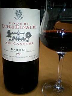 この夜は、水曜日の夜に参加した、「エンプソンとオプウムの夕べ」で出たワインの一つ、ルイジ・エイナウディ (リンクはドルチェット・ディ・ドリアーニ1997 売切) のワインを飲みました。色はしっかりした赤に、ふちが若干レンガ色になりかけてますがまだまだフレッシュな濃い赤です。ジャムのような濃厚で果実味溢れた香りに、酸もしっかりあることが香りから解ります。実際とてもしっかりと酸があり、タンニンはシルキーで一口飲むと、ちょっと笑みがこぼれてしまうような、そんないいワインです。名前を聴いた事があるものの、実際には飲んだことなく日本で売ってるのもあまり見かけないように思ったのですが、現在は三国ワインさんが扱ってるようです。今回はそこを経営しているマテオさん(男前でした!)の隣りで飲んだこともあり、お気に入りのワインになりました。どんな作り手かというと・・イタリアの戦後最初の大統領、ルイジ・エウナウディが1897年に創設した歴史あるワイナリー。 現在はその孫娘のパオラさんと、その息子のマテオさんが経営にあたっている。 ブドウの平均樹齢は25~30年で、40年を超えるものも少なくない。カッシナ・テックの新しい醸造所では温度と湿度を一定に保つために、全ての設備が地下に整えられています。98年にカンヌビの畑を購入し、伝統的なつくりと最新の技術で進化し続けています。 バローロ ネイ・カンヌビ 1999 だいぶ前のワイナートでも取り上げられていたようですね。その記事を何となく覚えていたから作り手の名前は聴いた事あったのかもしれません。水曜日に開けたワインをもらって帰ってきて飲んだのですが、まだまだしっかりしていて、きっとこれから熟成してから飲む方がいいのかもしれません。因みに、小売希望価格は・・13,650円とのこと。うーん、ネットで売られたら・・やっぱり12,000円くらいはするのかな。高いのは納得するけどなぁ~、やっぱりいい年だと言われるものしか買えない価格ですね^^; でもでも、いま買っておいて寝かしておかなきゃ~、飲み頃のワインは飲めないってジレンマが・・。だったらお手頃なドルチェットを楽しむ方がCPいいかも。試飲しましたが、ドルチェットはバランス良くて美味しかったです。見かけたら是非、お試しください。