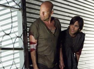 7/21のレイトショーで観た映画は『ダイ・ハード4.0』!!このシリーズを劇場で観るのは初めてでしたが・・とっても楽しめましたっ!いつもの解説のコピペはYahoo!から。解説: ブルース・ウィリスが悪夢のような事件に遭遇しながらも知恵と体力を駆使して巨悪と戦い抜く、大人気アクションシリーズ第4弾。ウィリスは人間味あふれる主人公ジョン・マクレーンを演じるほか、製作も兼任。『アンダーワールド』のレン・ワイズマンを監督に迎え、全米を襲うサイバーテロの野望に立ち向かう最強に“運の悪い”男の不死身の奮闘を活写する。閉鎖的な空間での死闘が多かった前作までに比べ、カーアクション満載の豪快なアクションの数々に圧倒される。 デジタルによって制御されている全米の都市機能の壊滅を狙う謎のサイバーテロ組織が動き出し、システムがテロによって攻撃されようとしていた。アメリカ政府ですら機能不全に陥ってしまう緊急事態のなか、これまで幾度となく危機を救ってきた元刑事のジョン・マクレーン(ブルース・ウィリス)が、再び事件解決に乗り出す。「アンダーワールド」シリーズを観てないけど、このレン・ワイズマン監督、人気シリーズを上手く蘇らせたよね~。凄くスリリングでドキドキで、今までの一人で頑張るジョン・マクレーンじゃないけど、どう考えたってアナログな刑事だから、サイバーテロに立ち向かうにはこうした助っ人が必要な訳で、脚本も良く考えられたんだろうなぁ~と思いました。下の画像のシーンは凄かったよ。ま、こんなことありえないだろうけど迫力あったね。