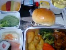 今回はルフトハンザ・ドイツ航空でのフライトなので、行きも帰りもフランクフルト経由です。最近はセキュリティに色々と厳しく、お化粧品もたくさん買い込んで乗るわけに行かず、残念ながら諦めたものもありますが、とりあえずオーバーするくらいは買ってしまいしました。だって、100mlって・・少ないと思いませんか?!ま、それはさておき機内食をご紹介、帰りは携帯を取り出して止められたので、画像が無いので行きのみです。 最初はビーフ(牛丼)との選択でチキンと白ワインを。サイドには茶蕎麦と(帰りもあった)お寿司にフルーツが。 さすがはドイツ航空、しっかり瓶ビールを積んでます。軽食の選択はおにぎりで、私はサンドイッチと共に。 夕飯には1週間は食べないだろう日本食を。これが意外と肉厚なウナギで機内食としては絶品!もう一つはソーセージだったので心惹かれましたが美味しかったので、良しとしましょう・・。ソーセージだったら間違いなくビールと合わせるところですが、その前に飲んでいるので赤ワインと合わせました。デザートのロールケーキは手をつけず、隣りの方に食べてもらいました。座席は真ん中の壁の前の3列席でのど真ん中(最前列のみ3席で後方は4席)で、両端にそれぞれ男性が。年齢も違うけど、お仕事の業界が同じで(私ではなく、その2人が)、途中から色んな話をして結構盛り上がり・・映画は「バルトの楽園」は興味なかったし、「ファンタスティック・フォー」は見たやつだし、もう一つはアニメであまり見てないけど、「Mr.ビーンズ」の新しい映画は笑えましたね~。そんな訳で、真ん中はかなり窮屈ではありましたが、12時間半のフライトを楽しみました。