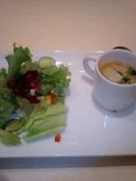 南青山で中華を食べようと、東京駅から移動中、とある駅のエスカレーターで転落・・。かっこ悪くも下まで滑り落ちてしまいました。足はたいしたことなかったけどあごを切ってしまい、手当てに時間がかかって行こうと思った中華のランチは出来ませんでした。まぁ他の案のイタリアンもことごとくお休みで、色々と悩んだ末に決めたお店だったので残念です。そして、午後の予定の新国立美術館にも・・さすがにすぐには歩き回れないので断念。情けないです・・駆けつけてくれたごるべらさん、Fujikomaruさん、ご心配をおかけしてすいません。いろいろとお気遣いいただきどうもありがとうございました。結局、近くのビルのイタリアンに入り3人でランチ。 前菜にサラダとスープ、メインは秋鮭のグリルと車海老のスープ仕立てにデザート・コーヒーつきで2,000円でした。まぁまぁ合格点ってところですがまた行きたい、というお店ではなかったです。。。