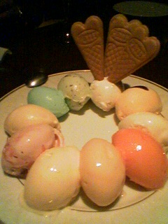 デザートにジェラートを注文。普段はあまり食べないアイス、美味しくってパクパクいっちゃいました。