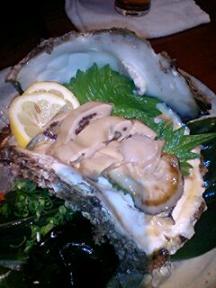 友人の店は和食メインで、お造りの盛り合わせ、焼きハラス、万願寺唐辛子の醤油焼など食べました。画像は特大の岩牡蠣。美味しかったです。