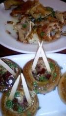 画像の手前はマッシュルーム、奥が豚耳の鉄板焼です。
