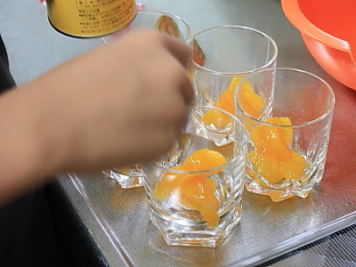 先週の敬老日、我が家にパティシエが登場?息子がゼリーを作ることになりました。ネットでレシピを検索し、簡単で予算500円以内で、それなりに見える物をチョイス早速、再作開始です!缶詰のみかんとシロップに溶かしたゼラチンを混ぜた物を器に入れ・・・冷蔵庫に入れて固まったら、果汁100%ジュースに砂糖と溶かしたゼラチンを入れて、更に冷やします。すると 「パティスリー風 オレンジゼリー」 のできあがりうまく2層に分かれて、美味しそうなゼリーができましたもちろん、おばあちゃんは大喜びでしたが、作った本人の満足度の方が大きかったようです。ちなみに、実作業時間は15分程度・・・ちょっと簡単すぎたかな?おっと、我が家にはお年寄りがもう一人、いやもう一匹!忘れておりましたスミマセン、君の分は何も用意してませんでしたので、来年までお待ちください