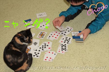 今朝、残念なニュースが飛び込んできました。前回、ブログ更新までに解放される事を願っていた後藤さんが残念な結果となったらしい事ですご家族の悲しみは計り知れません。この事を決して許すべきではありませんが、同じイスラム教の信者で、普通に暮らしている方々を憎んではいけません。彼らも被害者であり、テロ行為により多くの犠牲を払っているのです。この事は覚えておく必要が有ります。 さて、話は一転して、今回も「チョコ」ちゃんの様子をお知らせいたしましょう 息子が、トランプを並べていると、すかさず走りより・・・ この後、トランプの上を歩くは、飛び込んでグシャグシャにするは楽しそうにジャレておりました。結果、息子に「邪魔だ!」と怒られてしまい、強制退場となりました 一方、その騒ぎの中で「カプ」はと言うと・・・全く気にせず、グッスリと就寝中「バカな事には付き合ってられん!」とでも思っているのでしょうか? さすが、伊達に歳を取っている訳ではない!