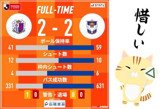 TV中継で見ていたのですが中々良い試合で結果は2-2の引き分け。