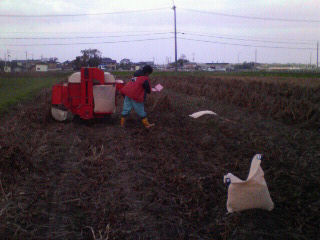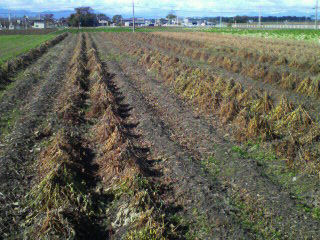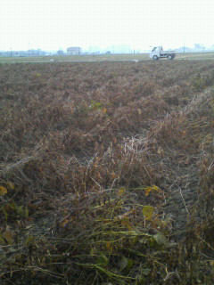 きのう 21年産のお豆さん 刈り取りしました・・・いぇぃ まずは 刈取りして、逆さにし自然乾燥 腰イタ・タ・タ・タ・タぁ それから脱皮そしてさらに乾燥 乾燥ができて大きさの選別 選別してから傷などの選り分け皆さんにととくまで、まだまだ日にちがかかる(出荷は12月ごろ) お正月のお節に間に合うかな今年も、この黒豆さんで まめ茶やきな粉を作る予定ですおいしいよ お楽しみに