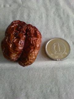 きのうのお話どうですか 話するだけで、汗が出てきます。(辛)これまたホントです、ハバネロにもいろいろな辛さや色があることを みなさん、見たこと有りますか なんだこれは・・梅干か これが「本当の正体」・・・・・ (乾燥後の写真)以前、日記(お題(誕生))にも掲載したハバネロ チョコレート 見た目は ピーマンをより小さく 色が本当に緑から茶色に成長します こヤツも、生で見ると辛いのかと疑うかも でも、食べると すっ・・・・ごい ハバネロ界では一番かな。こちらの商品も 勇気のある方・イベントの罰ゲーム・普通の辛さに満足してない方・・・など 珍しい一品なのでぜひお試しください。 ※本当に辛いので使用に注意が必要です。