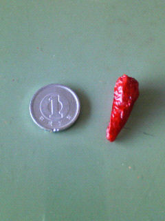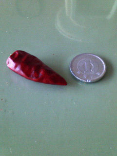 一味物語(続遍)いよいよ 九の巻 名前は・・・I amです。(です・・・って日本語かよ) 名前は(スーパー)ですが、実はあまり大きくなく、他の唐辛子よりも小さいほうかなでも辛さは、倶楽部評価でランキング4(辛さレベル)のハードパンチ 「すげぇ~」 くせも無く、辛さの一つ上級品かな一度食べてみてね次回(続遍)シリーズ最終回・・・拾の巻 お楽しみに