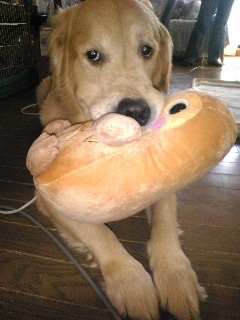 新しいぬいぐるみをくわえ、レオンは逃走した!