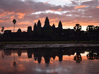 少し前ですが、友人に会いに初めてカンボジアへ行き、念願のアンコール・ワットへ!何年も前から行ってみたいと思ってたんだけど、なかなか機会がなくてずっと先延ばしに。海外旅行の行く先を決める時にいつも最終候補に残っても、ハワイなどに負けてました。一番最初の観光が、早速私にとって一番のハイライト、アンコール・ワットの日の出。早朝、シェムリアップからアンコールワットへ向かう道は、観光客を乗せたトゥクトゥクが列になり、暗い中ライトが連なってきれいなくらい。乾季ベストシーズンのアンコール・ワットは、世界中から観光客が来ていてすごい人。日の出を待っている間、日本人のおばあさんが「前の方で写真撮りなさい」って、場所を譲ってくれました。おかげで目にも心にも焼き付けた景色、写真もとてもいいものが残せました。真正面から見るより、向かって左から見ることをお勧めします。塔が5本見える位置が美しいらしい。暗いうちは曇ってて残念って思ってたけど、友人曰く、晴れてる空より雲が色づいてもっときれいだよと。本当に日の出とともに雲に表情があり、神秘的でした。アンコール・ワットを見た後は、トゥクトゥクで周辺の遺跡巡り。アンコール・トムのバプーオン。木の根が遺跡に絡まるタ・プロム。ガイドブックを読みながら、たくさんいい写真を撮って、ゆっくり見てまわりたい私。携帯で写真をバシバシ撮りながら、ササーッと観光する友人たち。のんびりすぎる私、途中はぐれたりもして。あたしここに来るの最初で最後かもしれないんだから、もっと見させてよ!と、タ・プロムで一人怒ってました・・・。にほんブログ村