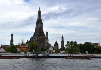 バンコクでは魚に脚をパクパク食われていただけではなく、有名どころの観光もしました。雨が降ったりやんだりの中、渡し船に乗って、「暁の寺」と呼ばれるワット・アルンへ。 このお寺、遠目には灰色みたいな色をしていますが、実は様々な色の陶器片のモザイクで飾られているの。近くで見ると、色鮮やかな装飾や鬼(ヤック)がたくさんあるんです。 81mもある大仏塔は、途中まで階段で登ることができます。これが、かなり急。 手すりにつかまって、一段ずつやっとこ登る。降りる方がもっと怖い。降りる勇気が出るまで、船が行き交うチャオプラヤー川をかなり長い間眺めていました・・・。 後ろに人がいると焦ってよけい怖いから、誰もいない時をねらって、座るようにして降りて行った。 無事地上に降り立った後に休憩していたら、近くにいた日本人女性も「降りるの怖かったー!」と大騒ぎ。彼女がすっごく怖がって降りている様子を、外国人観光客が笑って動画に撮っていたらしい。また船で対岸に渡り、チャオプラヤー川を眺めながらのんびりランチ。「ウォーター」を頼んだのに、「コーラ」がでてきたのにはショック・・・! にほんブログ村