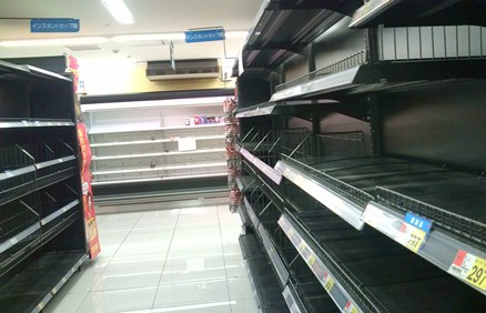 今回の大震災の被害にあわれた方々に、心からのお見舞いを申し上げます。東京では、余震がまだ続いていますが、ましになってきています。津波に襲われた町に住んでいる親戚も、昨日無事だとわかりました。被災地に家族や友人がいる、いないにかかわらず、今回の地震は、多くの人にとってかなりショックが大きいものだと思います。私もあれからずっと、胸が痛くて言葉にならないです。電力不足のため、東北、関東で計画停電が実施されています。信号も医療機関もすべて停電に。在宅療養の患者さんとか、絶対大変。私が住んでいる東京23区は対象外ですが、みんな節電を心がけています。今日出かけたら、お店のネオン、店内の照明やエレベーターなど、みんな節電してました。私も家ではなるべく電気を消し、エアコンつけずに厚着して、不要なコンセントは抜く。暗く寒い体育館の床に座り、二人で1個のおにぎり配給されている方たちをテレビで見たら、電子レンジ使えないです。よく考えたら、便利だけど本当は必要ないもの、身の回りにたくさんあることに気がつきました。最初の地震のあとに避難するときも、余震に備えて家で荷物まとめる時も、周りにあるのは生きていくのに必要ないものばかりだと思った。今回の地震で、家族や友人についても考えました。ふだんは全然交流のない兄弟と、まめに連絡取り合った。地震の数日前から、友人とちょっと嫌な感じになってて、実は私すごく冷たいメール打って保存してあったんだよね。このまま音信不通続けるか、このメール送りつけてむかついてる事ハッキリ伝えようか、とか考えてて。地震の後も、その友達どうしてるかなと思ったけど、こっちからは連絡しなかった。そしたら当日の夜、大丈夫だった?って向こうから連絡くれて。状況がちょっと落ち着いてから、こないだごめんね、ってお互い素直に謝りました。ずっと地震のニュースを流していたテレビ、昨日からCMが流れ始めました。(ACのが多いけど。)地震以来、広告などのジャンクメールは一切届かない。大事なメールがうもれてしまわないよう、企業なども気を使ってくれているのでしょう。地震が起こっても、計画停電の影響で電車が止まっても、こんな状況なのに駅で長時間待ったり、新幹線やタクシーで通勤しようとしている人たちがいる。私は長期休暇中で授業はないし、教授が大学に来なくていいというから時間を持て余してしまい、社会に属していない我が身が恥ずかしい・・・。今日は、募金以外に何かできないかと思い、とりあえず献血へ。どうせ家で地震のニュース見てるなら、献血しながら見てても変わらないし。全血と成分献血どちらの需要が高いか聞いて、いつもは時間かかるから断っている成分献血にした。そしたら返血始めたあたりから手に違和感が出て、指先がしびれ始めたので中止に・・・。1/3とった所で止めたので輸血に使える量ではないけど、薬の成分にはできるって。結局、あまり役に立たってない私・・・。でもスーパー品薄だから、終わった後ドーナツとかバクバク食べてきた。西、南の方に住んでらっしゃる方もご存じかもしれませんが、地震後から、東北、関東のスーパーやコンビニ、品薄なんですよ。みんな地震や停電に備えて買いだめしたり、地震の影響で入荷できない物もあり。そんな中でもどっさり買いだめしている人なんていなくて、他の人にも行き渡るよう、みんな良識の範囲で、必要最低限の量しか買っていないです。店員さんの中には、きっと地震で家族や友人を失った人もいるでしょうに、一生懸命商品を並べて、レジに並ぶ長い列のお客さんに嫌な顔ひとつしない。こんな大惨事の状況でも、日本人ってすごいと思いませんか。コンビニでは、地震で床に落ちた商品を客が拾って棚に戻し、列に並んでお金を払って買い物をする。本数少ない電車を待つ大勢の人たちが、ホームで列になって、寒い中黙って並んでいる。地震の後、電車がすべて止まって、駅で一夜を明かした数えきれない人たち。パニックになることはなく、階段に座りこむ人々は列になり、通行人用の通路を開けておく。朝、電車が動きだして人が去った後も、ゴミひとつ落ちてない。海外の新聞に、「日本はマナー世界一」と紹介されたようです。今、いろんな欲がなくなって、生きていることに感謝しています。数日前まで落ち込んでいたこと、頭にきていたこと、ホントもうどうでもいい。今の被災地では、プロフェッショナルのみが活動すべきで、へたにボランティアが行くと迷惑なだけ。でも時期が来たら、ぜひ被災地のボランティア活動に参加したいと思います。震災後の、Twitterの心あたたまるコメント集。泣くよ。http://prayforjapan.jp/tweet.html @prayforjapan_jp近所のスーパー。どこもこんな感じです。商品によりますが、パン、缶詰、カップ麺はもうほとんど見当たらないです。