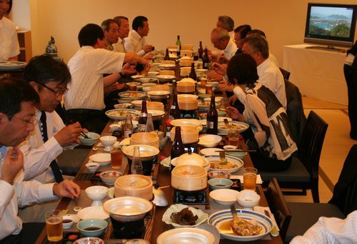 上島町での2日目はハードスケジュール。昨夜は遅くまで話し込み、朝も早く目覚めたので、睡眠時間4Hと寝不足。宿の窓からは、瀬戸内海の日の出を拝む事が出来た。宿からバスで、会議会場の弓削港近くのせとうち交流館へ。午前中は「日本で最も美しい村」連合の理事会、昼食を挟んで、総会、戦略会議、懇親会と続く。理事会では、多くの議案を審議したが、トップバッターとして、連合ガイドブックの進捗報告と出版社からのPDF原稿を纏めたコピー冊子を回覧した。10月10日の書店での販売開始と10月4日の宮崎県高原町での連合フェスティバルでの披露を目指して、追い込みを掛ける。総会には百数十名の出席者が集まり、2011年度の事業報告、2012年度の事業計画や予算、連合規約の改正、役員の改正、飯舘村への支援に付いて審議し、承認された。飯舘村の菅野村長もお忙しい中、総会に参加されて挨拶をされた。総会に続く戦略会議の共通テーマは、連合設立10周年の2015年を目指して、もう一度原点に帰って、美しい村の美しい、綺麗を住民参加の運動にするためにはの議論をした。伊那食品会長の塚越連合副会長の基調講演、美瑛町長の浜田連合会長、南小国町町の河津連合副会長の事例発表の後、ブロック別の分科会でグループディスカッションを実施。夕食懇親会では、上島町自慢の海の幸、柑橘類のお酒やジュース、レモンの搾りかすの餌で育てられたレモンポークなどを楽しみ、太鼓の演奏も堪能した。懇親会が終わった後、飲まなくても良いからと強く誘われて、酒好きの町村長連の部屋に行き、結局はお酒を少し飲む羽目に。今夜は四人部屋で、いびきに悩まされ、睡眠時間は更に減って3Hに。