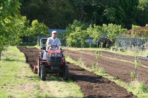 援農作業の師匠のBさんから声が掛り、市内の農家に野菜の植え付け作業の応援に出掛けた。調布市内にこのような大きな豊かな農地が残っているとは嬉しい。元は牛を飼っていた牧場跡で、日当たりも良いふわふわした柔らかい土壌で、野菜栽培の適地と思われた。師匠を含めて、6人での農作業に1時から5時過ぎまで励んだ。暫く使っていなかった小型トラクターのバッテリーを充電して、トラクターを畑まで移動させた。師匠の指導で、トラクターを使っての畑地の耕運作業からスタート。師匠以外の5名のボランティアは、皆トラクターの運転は初体験で、緊張してスタート。直に慣れて、交代しながら8本の畝を作った。出来た畝に、ロープで直線の印を付けて、石灰、堆肥、肥料を撒き、穴開きのビニールシートを被せ、鍬で土寄せをした後、枝豆の苗の植え付け作業。一畝の植え付け作業を終え、水やりをして今日の農作業は終了。地主さんの許可を得て、敷地内の竹やぶでタケノコ堀をやらせて頂き、お土産に持ち帰った。急いで、自転車で調布駅前まで走り、WIFEと長男との待ち合わせ時間にぎりぎり間に合った。3人で夕食を食べる約束をしていて、近くのプチ洋食店へ。店のご主人がわれわれの会話を聞いていて、店の野菜は市民農園で作っていると話が弾み、タケノコをお裾分けした。帰宅後、直ぐにタケノコを茹でて試食、米ヌカも無くお湯で茹でただけだが、取り立ての新鮮なタケノコだけに、えぐ味も無く柔らかくて、とても美味しかった。