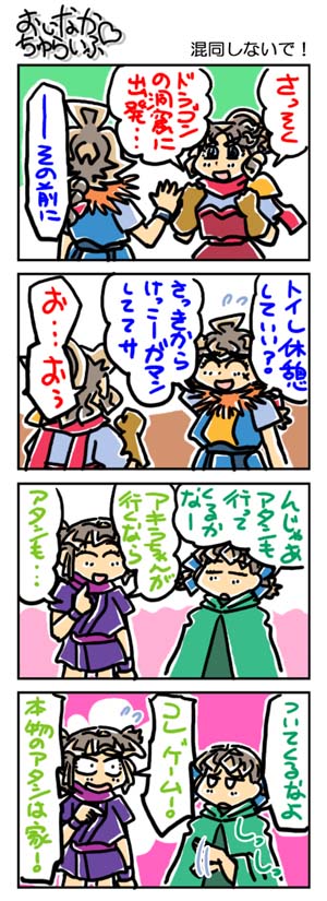 【3203本目!!】4コマのまとめページはこちら↑Webコミックランキングに参加していますデス。 よかったらクリックしてくださいませ。励みになります。*****************【ラクガキ】今日のラクガキ昨日のラクガキ*****************【カラーイラスト】「SOUKAIZAN」 ← New!!「THANKS 2015」「DRASLEFAMILY!!」 「GURUGURU!!」「THANKS 2014」 「THANKS 2013」pixivのページはこちら*****************どうも今晩は。みはちろ~デス。う~ん。やはり、というかなんというか……。今日からお仕事だったのですが、2日間お休みを延長した結果、かなり疲れるコトになってしまいました。まぁ、しょうがないことでアリマス。そういうワケなので、今日は簡単な更新で失礼します。今日のラクガキのハナシ。今日は「超ワタル」の「ヒミコ」と「虎王」を描きました。ちょい出来は悪いデス。んでは、また明日。