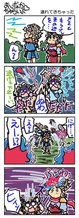 【3212本目!!】4コマのまとめページはこちら↑Webコミックランキングに参加していますデス。 よかったらクリックしてくださいませ。励みになります。*****************【ラクガキ】今日のラクガキ昨日のラクガキ*****************【カラーイラスト】「SOUKAIZAN」 ← New!!「THANKS 2015」「DRASLEFAMILY!!」 「GURUGURU!!」「THANKS 2014」 「THANKS 2013」pixivのページはこちら*****************どうも今晩は。みはちろ~デス。今日のツイッターは「バルス」祭りだったようですね。良い事です。イヤな出来事に関するツイートが山のように溢れる中、映画の中の一言を、大勢の人が一緒につぶやく。ヒジョーにくっだらない、意味のまるでないことではありますが、そういう余裕がないと、人間といふナマモノはもっとくっだらない事をやらかすようになるんじゃないかなぁ~と思ったり思わなかったりでアリマス。ワタシ?今日は不参加。風邪で寝込んでいたので。(苦笑)体調とアニメ視聴で、体調を優先するような年齢になってしまったのデスよ。今日のラクガキのハナシ。今日は「ワタル1」より「ワタル」と「ユーキ」を描きました。出来は悪くないデス。昨日の「ミスティ」がちょい失敗気味なだけに、いい線を選ぶことができて、ワリと満足でアリマス。ハイ。んでは、また明日。