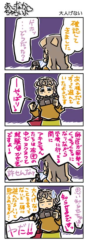 【3205本目!!】4コマのまとめページはこちら↑Webコミックランキングに参加していますデス。 よかったらクリックしてくださいませ。励みになります。*****************【ラクガキ】今日のラクガキ昨日のラクガキ*****************【カラーイラスト】「SOUKAIZAN」 ← New!!「THANKS 2015」「DRASLEFAMILY!!」 「GURUGURU!!」「THANKS 2014」 「THANKS 2013」pixivのページはこちら*****************どうも今晩は。みはちろ~デス。今朝方はスミマセンでした。だいぶくたびれているようで、今日はとうとう帰宅後にダウンしてしまいました。風邪ひいたよ~デス。あ~。今日のラクガキのハナシ。今日は「ガラット」の「パティ」を描きました。体調が悪くても、絵の調子がいいときもあるんですが、今日は両方ともダメダメだったよ~デス。寒気があるのが良くないのかなぁ~。う~ん。先日届いた補給物資のハナシ。「ゾイドジェネシス BD-BOX」もちろん、「ムラサメライガー」付のヤツです。いや~、これでアニメの「ゾイド」は全部そろえたなぁ~。うん、がんばった、ワタシの財布!(笑)そういえば、「ジェネシス」を放送していたときって、ヘンに忙しくて、あんまり見られなかったんだよなぁ~。録画は一通りしたものの、改めて見る時間が確保できなかったりで。……あ。確認してみると、このブログを開設した年に放送されていた作品だ。結構感慨深いものが……ある?(苦笑)さて、次は何を買おうかしらん。ん~。といったところで、今日はこの辺で。また明日。