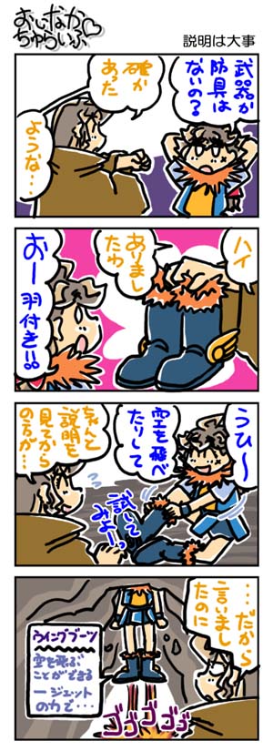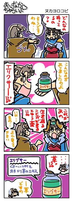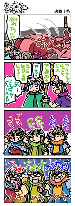 【3318本目!!】4コマのまとめページはこちら↑Webコミックランキングに参加していますデス。 よかったらクリックしてくださいませ。励みになります。*****************【ラクガキ】今日のラクガキ昨日のラクガキ*****************【カラーイラスト】「SOUKAIZAN」 ← New!!「THANKS 2015」「DRASLEFAMILY!!」 「GURUGURU!!」「THANKS 2014」 「THANKS 2013」pixivのページはこちら*****************どうも今晩は。みはちろ~デス。今日は風呂の掃除をしました。そろそろカビの季節に突入するので、その前に一度、きっちりと掃除をしておこうと思いまして。しばらく使っていなかったリンスの容器とか、ビミョーにヌルっとしていたりして、なんともアレなカンジでしたよ。明日は洗面台かなぁ~。ゴールデンウィーク?何それ??今日のラクガキのハナシ。今日は「ワタル2」の「カモシレーヌ」を描きました。一昨年のカラーイラストで描いて以来です。目とか難しいんですよ。今回も四苦八苦して描きました。美形青年風キャラをサラっと描けるようになれば、かなり上達できたと思えるんですけどねぇ。んでは、また明日。