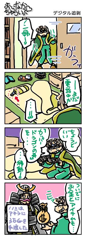【3308本目!!】4コマのまとめページはこちら↑Webコミックランキングに参加していますデス。 よかったらクリックしてくださいませ。励みになります。*****************【ラクガキ】今日のラクガキ昨日のラクガキ*****************【カラーイラスト】「SOUKAIZAN」 ← New!!「THANKS 2015」「DRASLEFAMILY!!」 「GURUGURU!!」「THANKS 2014」 「THANKS 2013」pixivのページはこちら*****************どうも今晩は。みはちろ~デス。先ほどは失礼しました。しっかし……なんでだろ~~~~~???日記はきちんと書いたハズなのになぁ……。う~ん。まぁ、いいか。うん。今日のお届け物。「天地無用!GXP 第14巻」小説版の「天地GXP」がよ~やくアニメ版のラストまでたどり着きました。なんといふか、凄まじい話の膨らませ具合でありました。でも、これで1部終了扱い。よく、1部終了でそのままオシマイというものがありますケド……ちゃんと2部やって欲しいなぁ~。(笑)「劇場版ラストエグザイル 銀翼のファム-Over The Wishes-」気が付いたらやっていた劇場版を収録したブルーレイでアリマス。テレビ版の編集+新作カット付きらしいのですが……ん~、見るヒマを確保できるかど~か……。それにしても「ラストエグザイル」もそれなりに息の長い作品になっていますねぇ。最初のシリーズが放送されたのが2003年。「銀翼~」の放送も2011年だし。まぁ、お財布の中身と余命のある限りは前向きにお付き合いするデス。ハイ。(笑)今日のラクガキのハナシ。今日は「ワタル1」の「翔龍子」様を描きました。出来はあんまり良くないかなぁ~。「翔龍子」らしからぬポーズにしていますし。……明日は頑張るデス。ハイ。んでは、また明日。