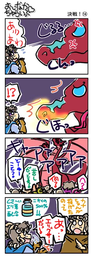 【3290本目!!】4コマのまとめページはこちら↑Webコミックランキングに参加していますデス。 よかったらクリックしてくださいませ。励みになります。*****************【ラクガキ】今日のラクガキ昨日のラクガキ*****************【カラーイラスト】「SOUKAIZAN」 ← New!!「THANKS 2015」「DRASLEFAMILY!!」 「GURUGURU!!」「THANKS 2014」 「THANKS 2013」pixivのページはこちら*****************どうも今晩は。みはちろ~デス。土曜日。珍しく人間様と同じようにお休みを頂戴し、自宅でゴロゴロしておりました。特に何もしておりません。あ~。夕食にちょっとだけ凝ったものを作ったくらいかなぁ~。鶏むね肉のソテー、トマト&チーズソースがけ。……おいしかった~。まぁ、そういう日もあります。ハイ。今日のラクガキのハナシ。今日は「トンデケマン」の「アラジン」と「トンデケマン」を描きました。出来はちょいビミョー。あと、ヤカンの正しい使い方を描いているハズなのに、何かを出しているよ~なカンジになっているのがど~にも……。やはり、夜間に目がついているのがいけないのでしょうか。う~ん。といったところで、今日はこの辺で。また明日。
