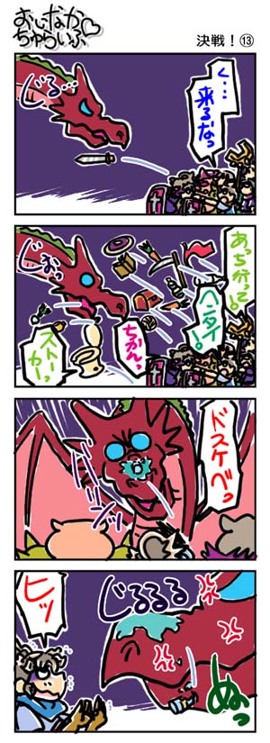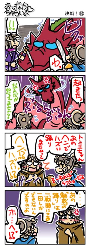 【3289本目!!】4コマのまとめページはこちら↑Webコミックランキングに参加していますデス。 よかったらクリックしてくださいませ。励みになります。*****************【ラクガキ】今日のラクガキ昨日のラクガキ*****************【カラーイラスト】「SOUKAIZAN」 ← New!!「THANKS 2015」「DRASLEFAMILY!!」 「GURUGURU!!」「THANKS 2014」 「THANKS 2013」pixivのページはこちら*****************どうも今晩は。みはちろ~デス。今日は四月馬鹿ですね。……まぁ、特に何か嘘をつくようなこともなく、一日が過ぎ去っていきましたが……。orzあ、そうそう。4コマなんですが、今日で10年目に突入です。よくもまぁ、飽きもせず、続くもんです。ハイ。こんなに続けるツモリはなかったんですけどね~。とりあえず来年までは頑張りますデス。それ以降は……何にも考えてないので。(苦笑)今日のラクガキのハナシ。今日は「ワタル1」の「ワタル」「虎王」を描きました。今月はいい調子をキープしつつ、そこそこの出来の絵を量産できるようにしたいデス。んでは、また明日。