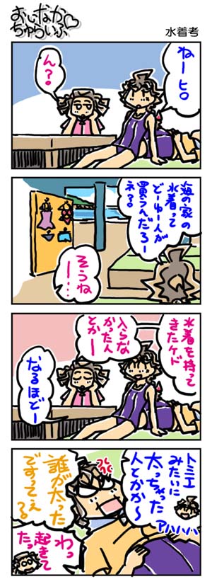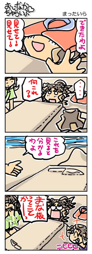 【3460本目!!】4コマのまとめページはこちら↑Webコミックランキングに参加していますデス。 よかったらクリックしてくださいませ。励みになります。*****************【ラクガキ】今日のラクガキ昨日のラクガキ*****************【カラーイラスト】「THANKS 2016」 ← New!!「GURUMIN!!」「SOUKAIZAN」「THANKS 2015」「THANKS 2014」 「THANKS 2013」pixivのページはこちら*****************どうも今晩は。みはちろ~デス。夜、寝付けないときなんかに、時々ですが、家の無線LANに接続しているタブレットPCでネットに投稿されている小説なんかを読んだりしています。で。そういうのを読んでいると、自分でも書きたくなってきたりするんですよねぇ~。まぁ、飽きもせず、ヲタなんてものをやっていますから、面白そうな設定とか、話の展開とか、そういうのを、そこそこの割合で思いついたりするんですよ。で、せっせとメモったりしています。ただ……そこから先に進まないんですよねぇ。文才がないというのもあるんですが、それ以前に、絵を描けてしまうというのが良くないよ~な……。画才も大してないのですが、それでも、こう毎日4コマとラクガキを描いていると、自然、絵が浮かんでしまうんですよ。で。文章に起こすよりは絵を描いてしまった方が早い、となってしまうのです。それなら漫画でもきちんと描けばいいのでしょうが、普段の4コマとラクガキだけでイッパイイッパイという状況でして……結局、設定を作っただけでお蔵入りさせてしまっております。……そういえば、今やってる4コマを終了させたら描こうと思っていた4コマのキャラ設定とかもお蔵入りしてたっけ。あははは……。は~。今日のラクガキのハナシ。今日は「ワタル2」より「海火子」を描きました。……調子がいいと、きちっとポーズが決まったりするんですが……今日のはなんともダラっとしております。は~。あ。誰か買いません?無駄に作った小説の設定とか。(笑)んでは、また明日。
