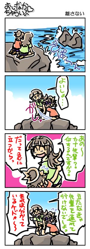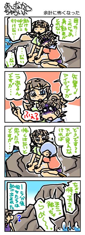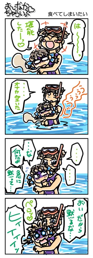 【3452本目!!】4コマのまとめページはこちら↑Webコミックランキングに参加していますデス。 よかったらクリックしてくださいませ。励みになります。*****************【ラクガキ】今日のラクガキ昨日のラクガキ*****************【カラーイラスト】「THANKS 2016」 ← New!!「GURUMIN!!」「SOUKAIZAN」「THANKS 2015」「THANKS 2014」 「THANKS 2013」pixivのページはこちら*****************どうも今晩は。みはちろ~デス。夕方に気が付いたんですが、腕にヘンな発疹が出来ていました。今日は朝方に降った雨のおかげで涼しかったので、ちょっと外で片付け作業をしたものですから、その時に虫にでも刺されたのかな? と思ったのですが……。夜になって、発疹の周辺がなんだか痛くて……。虫に刺されたかどうかも分からないので、とりあえず消毒をして、痛みを抑えるために、周辺に湿布薬を貼り付けて凌いでいるのですが……ど~したものか……。痛みが続くようなら、明日……は忙しくてムリか、明後日……も分からないか……え~と、そのうちに皮膚科にでもかかってこようかと思います。は~。なんて災難だ。orz今日のラクガキのハナシ。今日は「グランゾート」より「グリグリ」、「グランゾート冒険編」より「マリア」を描きました。最初は「マリア」だけ描いていたんですが、足の上になんだかスペースができてしまいましてね。「グリグリ」に乗っかってもらった次第デス。(笑)んでは、また明日。