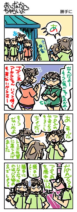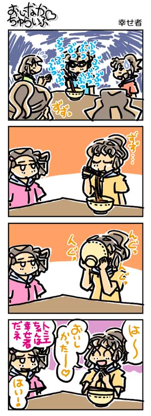 【3444本目!!】4コマのまとめページはこちら↑Webコミックランキングに参加していますデス。 よかったらクリックしてくださいませ。励みになります。*****************【ラクガキ】今日のラクガキ昨日のラクガキ*****************【カラーイラスト】「THANKS 2016」 ← New!!「GURUMIN!!」「SOUKAIZAN」「THANKS 2015」「THANKS 2014」 「THANKS 2013」pixivのページはこちら*****************どうも今晩は。みはちろ~デス。今日はお休みを頂戴したのですが、部屋の掃除やらなんやらで忙しかったでアリマス。は~、いつ以来だろう? 部屋に掃除機かけたのは……。あとは、今年に入ってからため込んだヲタアイテムの整理なんですが……。山になっていてどこから手を付けたらいいのやら状態でアリマス。一応、明日も休みなんですが、ん~、これをやるだけで一日が終わるな~。あ。そうそう。「Liveメール2012」の件ですが、ど~にかそのまま継続して使うことができそうデス。設定をいじったりしないといけないので、時間的に余裕のあるときに作業をしようと思っているのですが……。つうか、こんなことを考えられるくらいに、メールって使わなくなったなぁ~。いや、もちろん、携帯では使っていますけど、PCではほとんど……ね。ネットで注文した品物が発送になったとか、そのくらいしかちゃんと見なくなったし。ん~。これも時代か~。今日のラクガキのハナシ。今日は「新タカマル」より「ミライ」「ジロ」「どすこい」「カリン」を描きました。ちょほいと線が荒れています。反省でアリマス。んでは、また明日。
