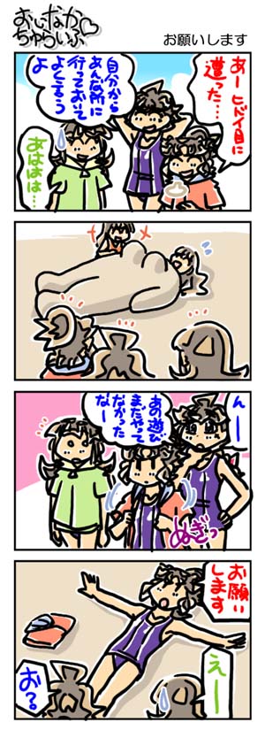【3450本目!!】4コマのまとめページはこちら↑Webコミックランキングに参加していますデス。 よかったらクリックしてくださいませ。励みになります。*****************【ラクガキ】今日のラクガキ昨日のラクガキ*****************【カラーイラスト】「THANKS 2016」 ← New!!「GURUMIN!!」「SOUKAIZAN」「THANKS 2015」「THANKS 2014」 「THANKS 2013」pixivのページはこちら*****************どうも今晩は。みはちろ~デス。バテてます。夏の疲れが一気にやってきた、というカンジです。体調不良も多分、そのせいでせう。一応、明日、明後日は世間様と同じようにお休みなので、ゆっくりするツモリです。……ゆっくりできたらいいなぁ……。今日のラクガキのハナシ。今日は「バイファム」より「カチュア」と「ロディ」を描きました。「カチュア」はひっどい出来です。ど~にも苦手なんですよねぇ……。特徴を掴んでいるようで、まるで掴んでいない、というカンジでして……。そこそこの回数描いているように思うのですが……。まぁ、また練習しますデス。ハイ。んでは、また明日。