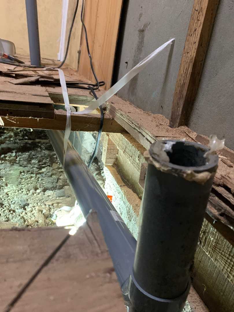 フローリングの上に合板重ねばりしてあってあんまり穴を広げたくないため、ギリギリ入れるくらいに。お腹出てなくて良かった。