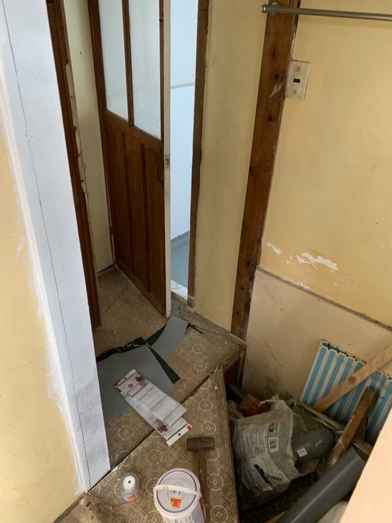 こんな感じで、勝手口を潰しまして、あとは壁を鉄か木かどっちかで下地を作ってボードとクロスで仕上げですかねー