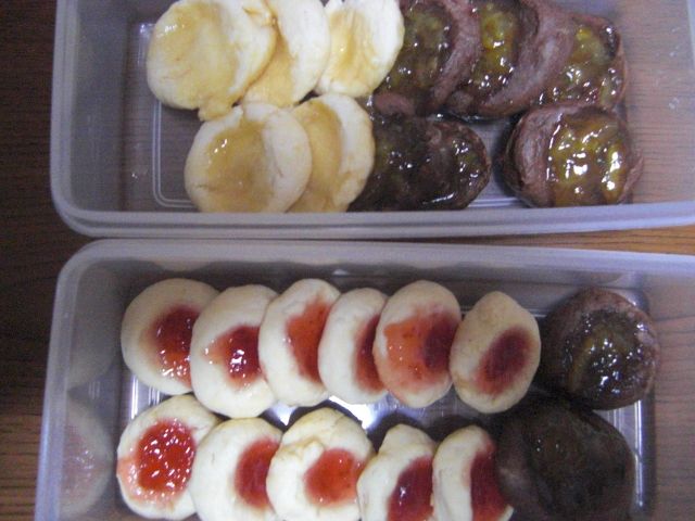 皆様こんにちは。今日の中野市は朝から快晴です。風は多少ひんやりしてますが、日差しのせいかいつもより暖かいです。春はもうすぐです。日曜日に妻へのちょっと早いホワイトデーとしてクッキーを作りました。バレンタインデーに手作りのトリュフチョコを頂いたので、こちらも手作りでしようと。普通のクッキーだと芸が無いのでネットで調べてロシアンクッキーにしてみました。あ、ロシアンクッキーと言ってもわさびやからしは入ってません、念のため。ロシアンクッキーのレシピ(A) 小麦粉:350g バター:60g 砂糖:70g 牛乳:160ccベーキングパウダー:小匙3(B) 純ココア:大匙4(C) 好きなジャム:適量(いちごジャム・マーマレード・はちみつ使用) 手順1.(A)をボールに入れて混ぜる2.混ぜたものを3つに分ける3.3つに分けた内、1つに(B)を入れ捏ねる。4.棒状に捏ねたらラップでそれぞれ包んで冷蔵庫で30分ねかす。5.冷蔵庫からタネを取り出し、好きな厚さに切る。6.切り分けたものを丸めて中央を凹ます。7.凹ませた部分にジャムを載せる。※載せすぎると溢れ出ます。←いくつかやってしまい溢れ出ました8.余熱したオーブンで170℃で15分焼くで、出来上がったものがこちらです↓クッキー自体は甘さ控えめですがジャム等のおかげでやさしい甘さになってます。甘さが欲しいようであれば砂糖を増やしていただければと思います。妻は喜んで食べてくれました。今度はプリンとシュークリームが食べたいともうリクエストがきました。お菓子作りのスキルはまだ足りてないんですが・・・まあ、こんなので喜んでくれるので今度チャレンジしてみます。それでは皆様。今日も一日お元気でお過ごし下さい。