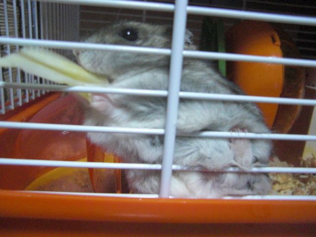 皆様こんにちは。今日の中野市は9時ぐらいから雨が降っております。気温も低めで室内はちょっとだけ肌寒いです。訃報です。今日、もときつん(通称もとすけ)が歴代の子らのもとに旅立ちました。1か月前から物がうまく食べられない状態になり動物病院へ連れて行ったところ、喉の付近に腫瘍ができてうまく飲み込めない状態になっているとの事だったので薬を処方してもらって飲ませていたのですが症状が改善されず再度受診したところ、顎の骨が変形しているせいでうまく噛めない状態になっているとの診断がありました。薬を併用し炎症を抑え食べやすくひまわりの種をすり潰して与えたり栄養ゼリーやベビーミルクを与えておりましたが、段々見た目にも老化や衰弱が進んでいき、昨日は動くこともままならない状態になり、本日逝ってしまいました。歴代の子らの中でもトップクラスのやんちゃ坊主でキャベツが好きで人間のサイズなら畳一枚分をペロリと平らげる程でした。次に好きな煮干しは尾頭付きじゃないと気に入らないので苦労しました。あんなに元気にはしゃいでたのに弱っていく姿は見ててとても辛かったです。僕は1か月ほどハムスター介護しましたが、皆様のペットもお年寄りであれば介護されてると思いますが、けっこう大変だったりしませんか?もとすけは今頃、他の子らと共に走り回ってキャベツの奪い合いでもしてるんじゃないですかね?我が家のハムタワーマンションに空室ができてしまいました。ケージを掃除して全体を洗って屋外に置いてありますが、ぽっかり空いてるのを見るととても寂しいですね。それでは皆様。今日も一日お元気でお過ごし下さい。