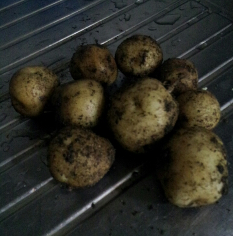 芽が出てきた部分を切って埋めて置いただけなのに。こんなに増えてた。これは又別の鉢。家の前に植えといたのを隣のジョッパルババアが豚足みてぇな前脚で折りやがったのを屋上に植えなおしたもの。こっちは花が咲いた。花を咲かせてお礼をしてくれた様に感じたのだったが。生かしてくれてありがとう、と。収穫した方のは花は咲かなかったんだけど。