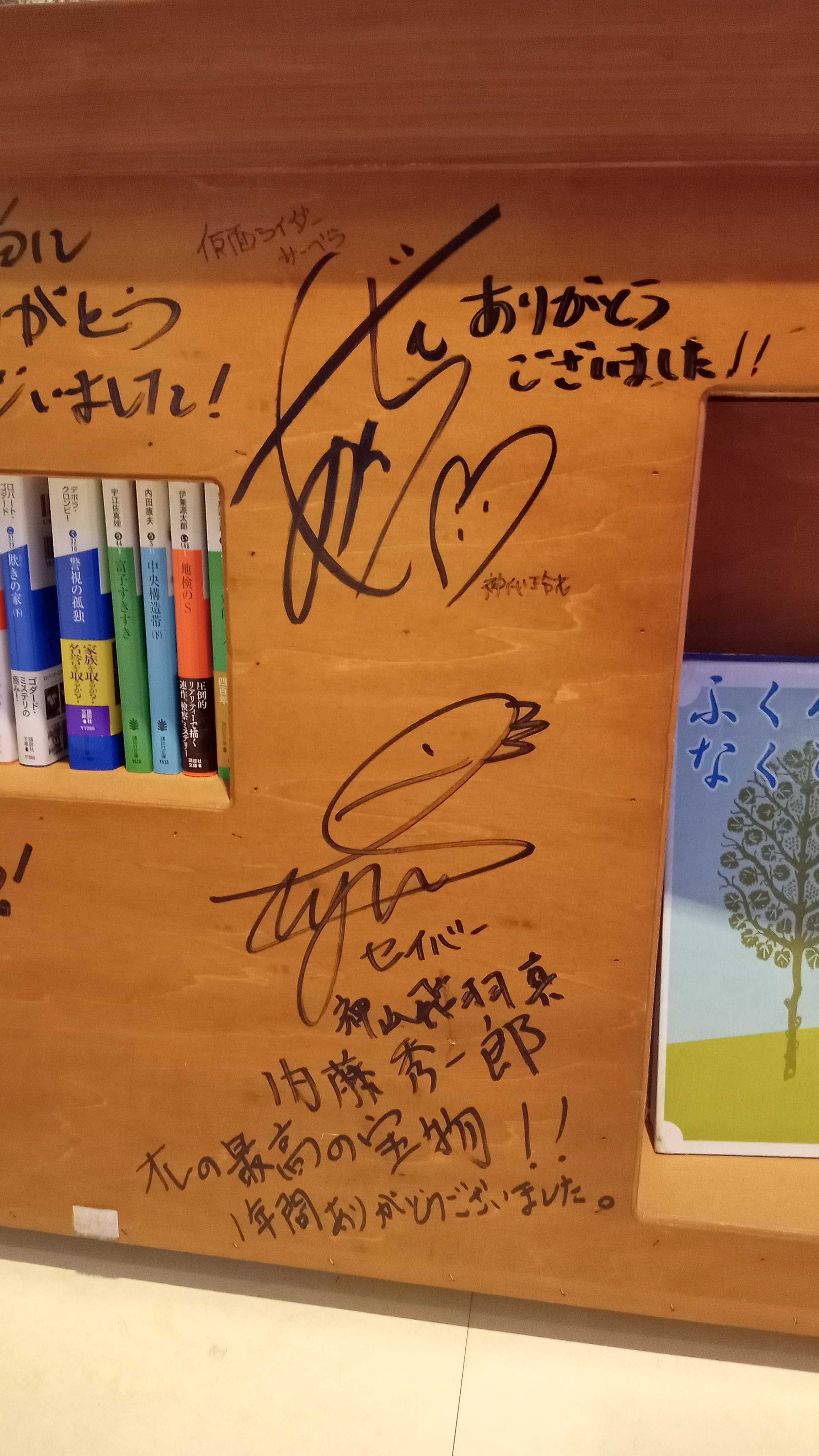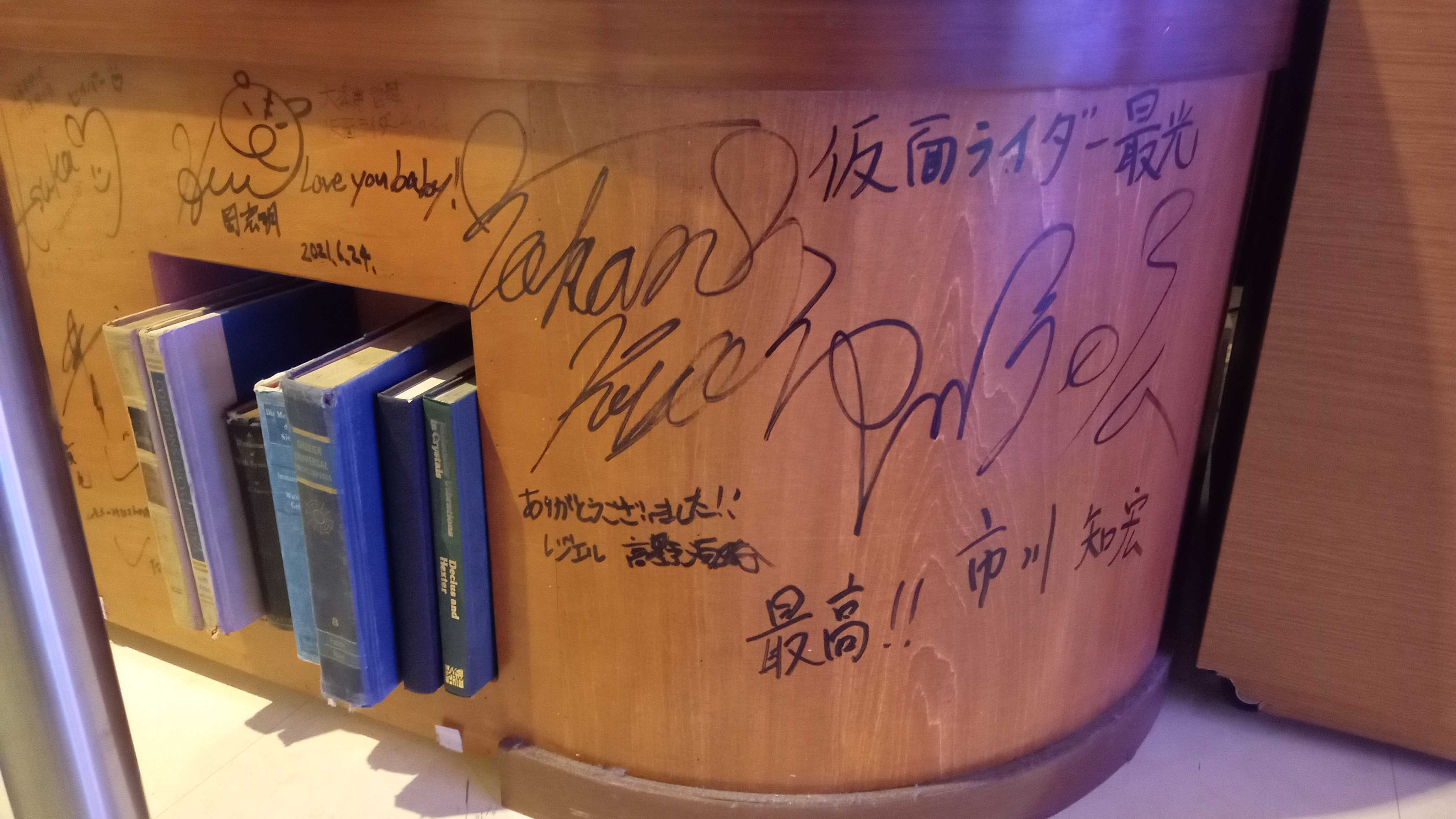 セイバー主要キャストのサインも側面に大きく記されていて、これだけで関西に行った元が取れた 9人の剣士と芽衣役の川津明日香さんは勿論、メギドからもレジエル役の高野海琉さんも参加しているのが嬉しい