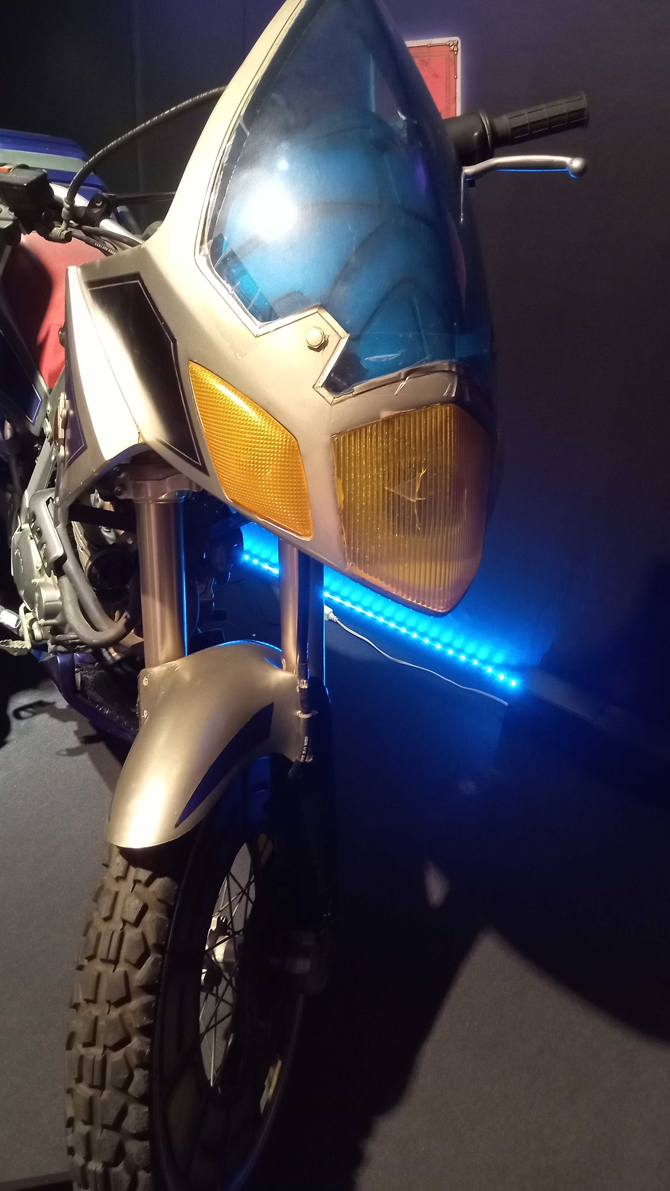 愛車のブルースペイダーのヘッドライトにヒビが入ってたのが過酷な撮影を物語る