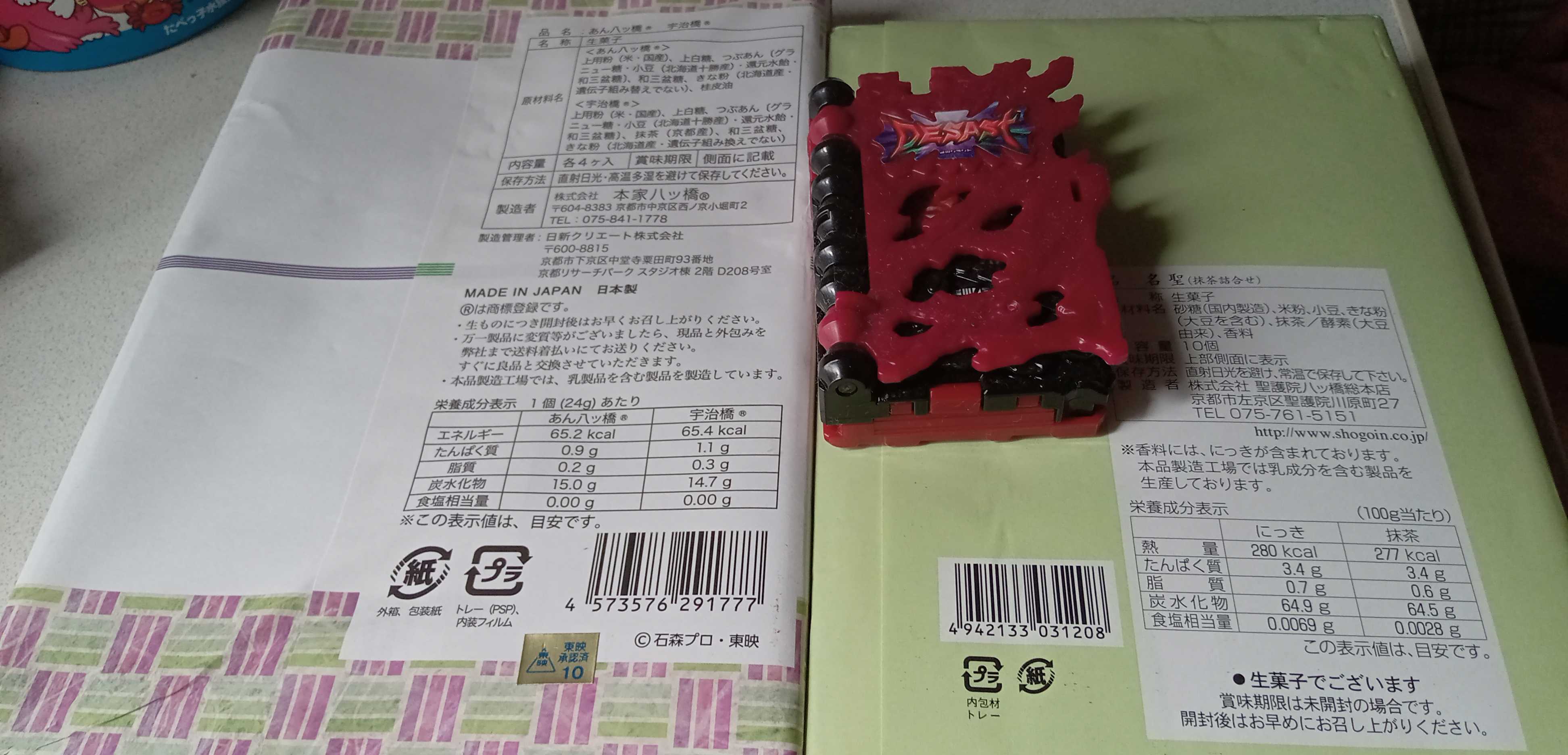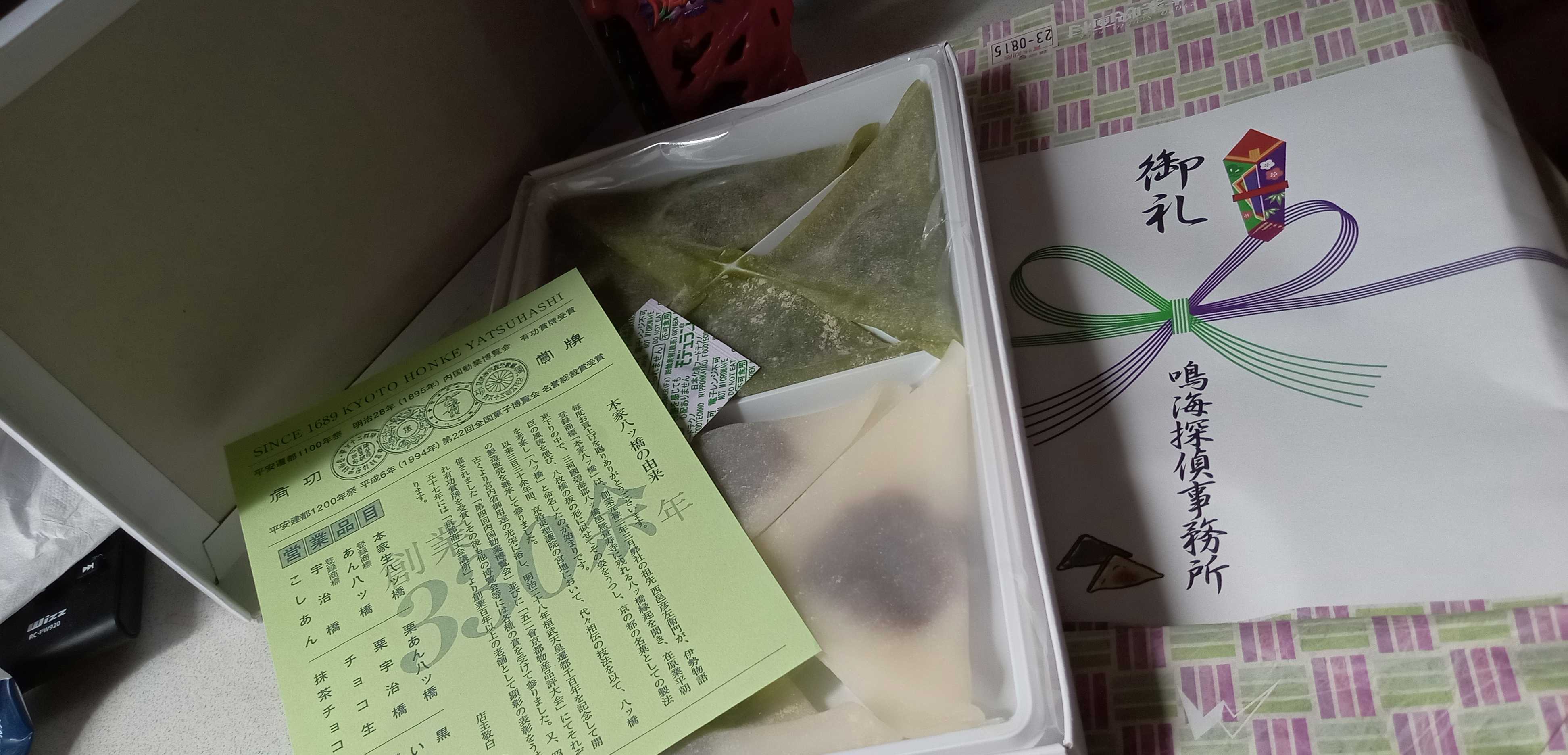 土産の八ツ橋 ハリケン20thと鳴海探偵事務所のパッケージ違いを2箱買ってしまった…