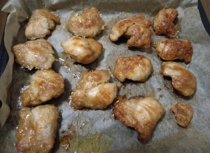 唐揚げを作りました唐揚げ粉を水で溶いてその中に鶏もも肉を入れて揉み込み約10分おきましたトレーにキッチンペーパーを敷いて先ほどの鶏もも肉を並べてオーブンで220℃で25分焼きました肉に味がしっかりついていて美味しく出来ました