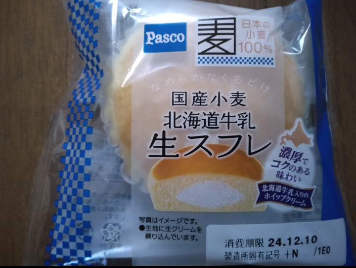 Pascoの国産小麦北海道牛乳生スフレを買ってきましたホイップクリームが程良い甘さで美味しかったです