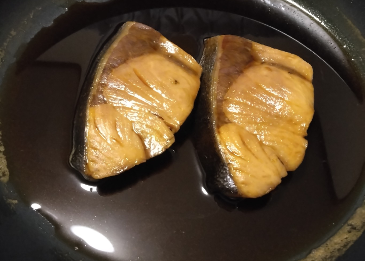 ブリの煮付けを作りました調味料は料理酒 大さじ1杯みりん 大さじ2杯砂糖 大さじ1杯しょうゆ 大さじ2杯をいれましたフライパンに調味料を入れて煮立たせた後、ブリの切り身を入れてスプーンで煮汁をかけて色が変わったら蓋をして弱火で10分煮たあと蓋を取って中火で煮汁にとろみが出てくるまで煮て完成ですちょうど良い甘辛さで美味しく出来ました