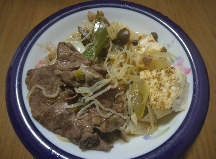 すき焼きを作りました具材は牛肉、玉ねぎ、ねぎ、白菜、しめじ、しらたき、焼き豆腐を入れました割り下はみりん 100cc砂糖 30gしょうゆ 100cc水 100ccを入れました熱した鍋に牛脂を入れたあと牛肉を入れて色が変わるまで焼いたあと具材と割り下を入れて野菜が柔らかくなるまで煮たら完成です野菜の水分で薄味になってしまったので割り下を作る時の水を少し減らした方が良かったかもしれませんがこれはこれで美味しく食べられました