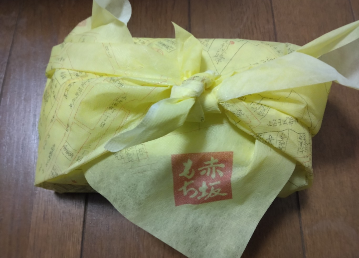 明けましておめでとうございます今年もよろしくお願いしますお土産に赤坂もちを頂きました中身を風呂敷に出しました餅の中にくるみが入っていて黒糖の甘さときな粉がよく合っていて美味しかったです
